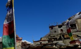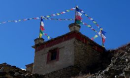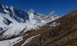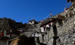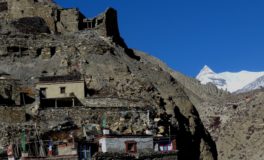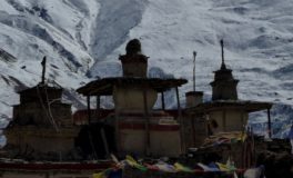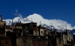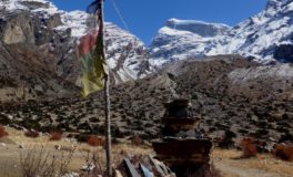 Les glaciers sont tout près. En arrivant à Meta, Chakyu, Kyang et Phu, villages en pierre sèche, chortens, drapeaux à prières flottant sous les vents ponctuent un désert d’altitude sous influence tibétaine. Nous quittons la vallée de Naar en franchissant le Kang La, à 5320 m d’altitude. Là-haut s’étalent sous nos yeux le massif des Annapurnas et celui du Manaslu.
